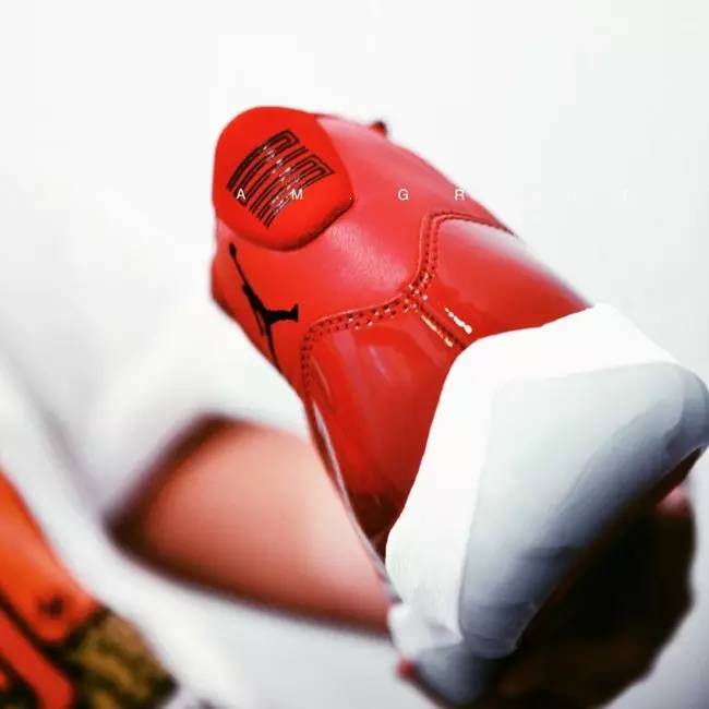 以 MJ 代言活动饮品佳得乐为配色灵感,带来激似胭脂红的喷鼻艳打扮。鞋带扣、鞋舌后背以及鞋垫等细节,此番以佳得乐从题图标及文字呈现,曲击从题。